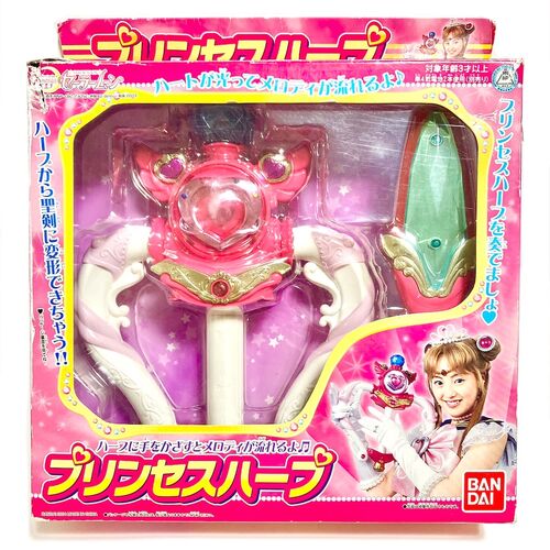 実写版セーラームーン プリンセスハープ (BANDAI 2004) 前世のプリンセスセレニティの人格に支配されて覚醒したプリンセスセーラームーンが使う武器。 女児向け玩具では珍しく変形ができて、ハープモードから聖剣モードになります。 パッケージではにっこり…